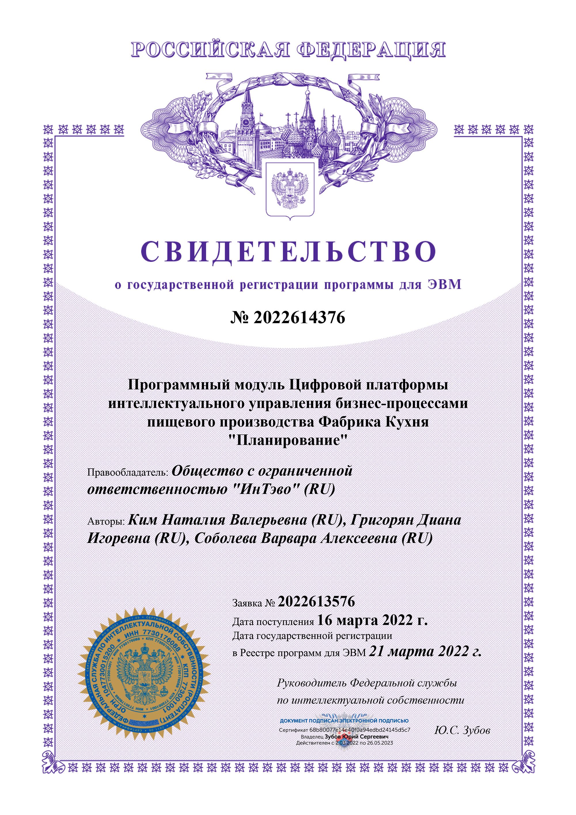 | Государственная аккредитация организации, осуществляющих деятельность в области информационных технологий | Запись в реестре аккредитованных ИТ компаний от 29.12.2020 № 13178 |